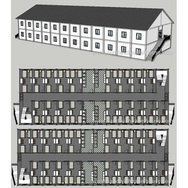 Two Story Portable Accommodation Container Dormitory For School Students I. Introduction School dormitories use the light steel structure system is adopted for the overall hoisting series of container houses, and the wall is covered with a composite rockwood sandwich wall panel. All panels and accessories can be folded and packed, and the installation is simple, suitable for long-distance large-scale transportation and export shipping. The roof, ground, roof, and circuit system are completely prefabricated in the factory, which makes the on-site installation convenient and fast, and shortens the time interval from building to using. The steel structure system makes the house have excellent ability to resist the wind speed of 120km / h; the light structure makes the house show good integrity when encountering the earthquake disaster which is equal to the earthquake fortification intensity of 9 degrees. The production of the foundation on site is small, and it can be used after being transported to the site. The house can be recycled for 15 years without any construction waste. The roof adopts structural waterproof design to enhance the airtightness and water tightness of the house. When the house is delivered from the factory, other decorative accessories such as awning can be added according to the actual application. II. Design description